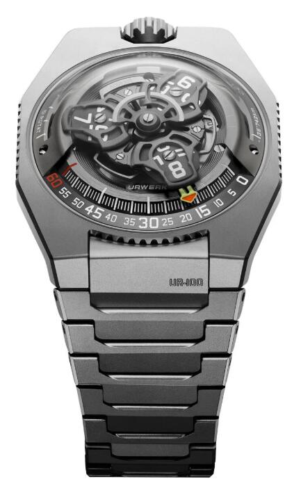 Continuing the iteration of its bestseller, Urwerk high quality watches replica has just taken the wraps off the UR-100V "Magic T." The Magic T retains Urwerk’s signature wandering hours display, and its case and matching bracelet are crafted from finely sandblasted titanium, giving it a very different look than the UR-100V’s “full metal case” introduced in 2021.